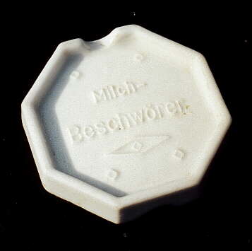 Nun ja, man lernt nie aus ! Es zeigt sich immer wieder, dass täglich etwas Neues dazukommt und man nie abgeschlossen hat. (Merke: auch ein weiterer kategorischer Imperativ von KPK) So geschah's, ich erhielt ein 65 mm Seitenlänge umfassendes achteckiges Porzellanding, welches als Milchbeschwörer in Omas-Zeiten seinen treuen Dienst tätigte. Im ersten Augenblick ist die Ähnlichkeit mit einem Mini-Aschenbecher verblüffend - jedoch das "Ding" soll mehr auf dem Kasten haben. Als physikalisch-chemisch ausgebildete Person ist man kritisch und neigt zum Experiment. Also wurde kurzerhand 1 Liter 3.5 %ige H-Milch gekauft, ein Versuchsaufbau konstruiert und losgelegt. Hier nun ein etwas ungewöhnlicher Versuchsbericht mit den erhaltenen, unschlagbaren Erkenntnissen, welcher nicht vorenthalten werden soll und im Internet meinen Freunden zu Verfügung gestellt wird. |